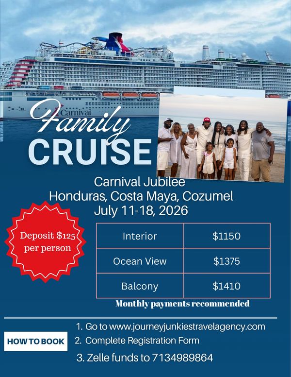 Step away from the hustle and bustle of everyday life and join us on a Carnival Cruise made for family fun and connection. Enjoy unforgettable moments, laughter, and quality time as we explore, relax, and make memories together. Let’s set sail for a stress-free escape your whole family will love!